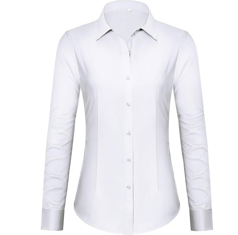 Designed to resist wrinkles and hold its shape, this blouse keeps a clean, put-together look straight out of the dryer.